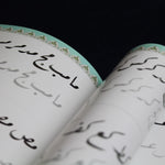 Ruq'a in this workbook is based on writing of Mukhtar 'Alam who designs calligraphy on the covering of the Ka'bah.