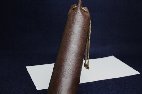 This beautiful case for qalams, pens brushes or pencils is beautifully crafted from soft faux leather wrapped around strong cardboard centre, and decorated with subtly embossed basmallah and whirling dervish.