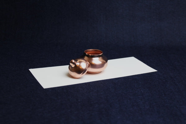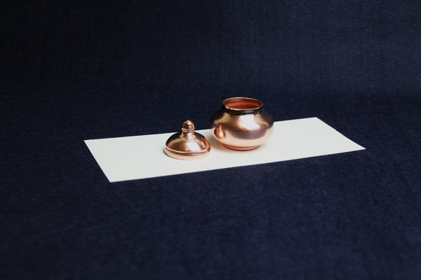 This beautiful inkwell with pull off lid is made of copper.
