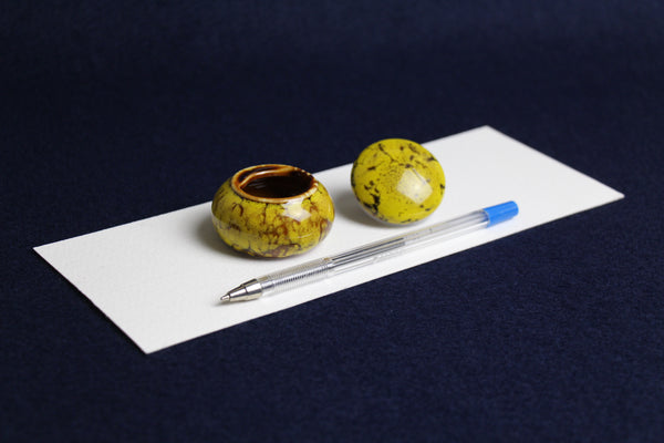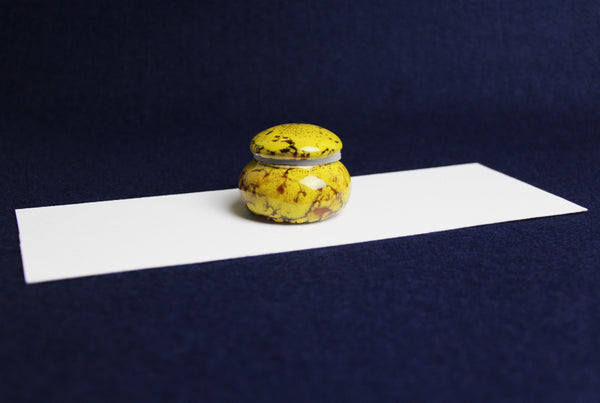 Small ceramic inkwell with twist-and-seal lid: yellow marble